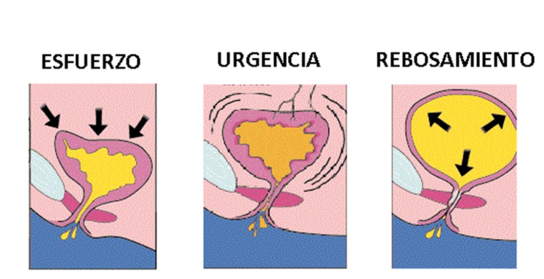 Incontinencia por rebosamiento: la vejiga no se vacía del todo y existen goteos postmiccionales